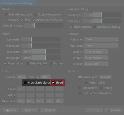 Spineでは、テクスチャ・パッカー設定を通じて、アトラステクスチャのエクスポート方法として2つの基本的なワークフローを提供しています: