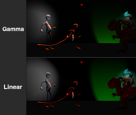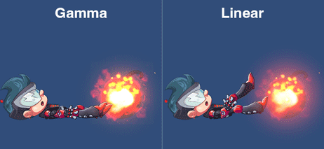 ただし、リニア(Linear)色空間も依然として適切な場合があります。特に、動的ライティングを備えたリアルな3D環境でSpineスケルトンを使用される場合には、こちらが適している場合があります。